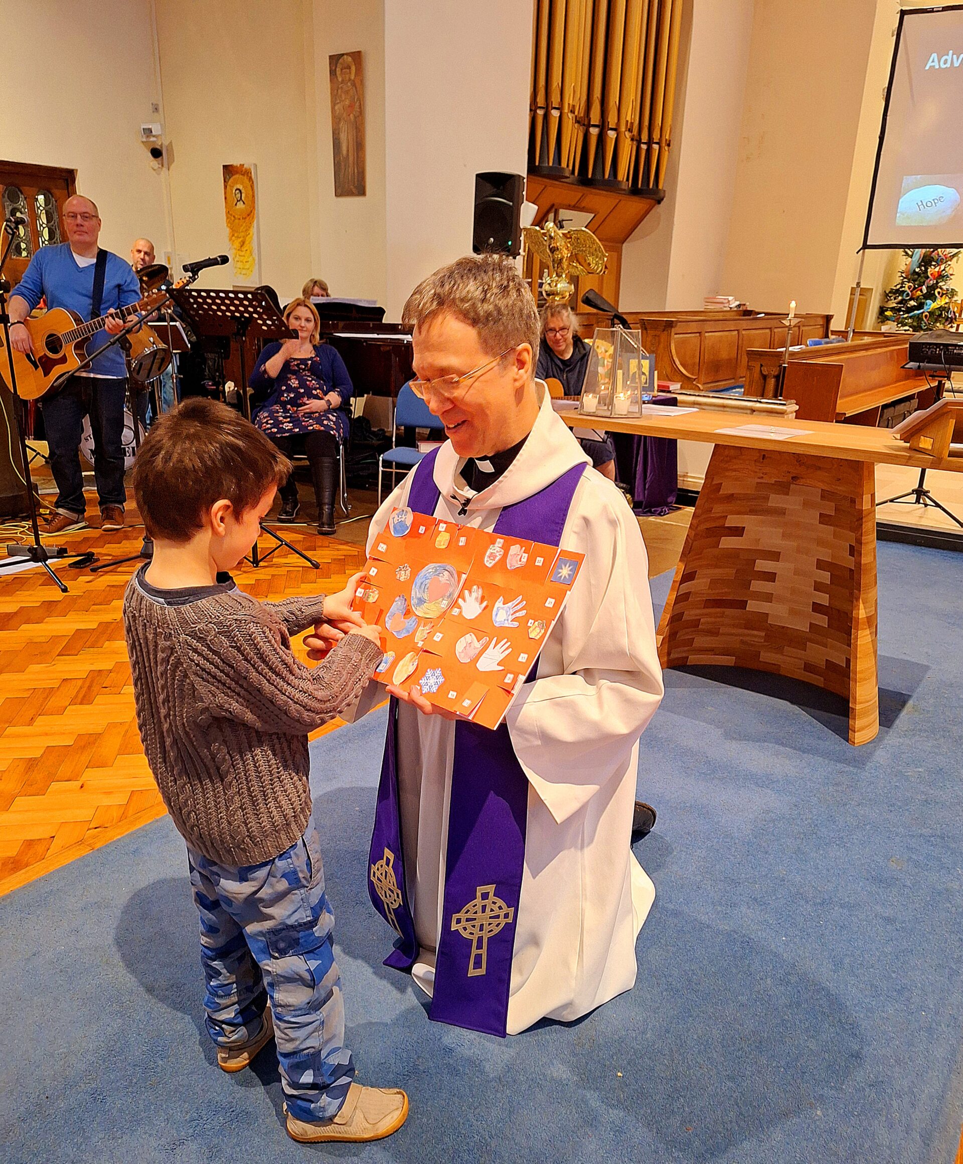 During the services in church we have space for families to sit together, and we have colouring and activities available throughout. There is also an area at the back of church which has toys available for any young members of our community.